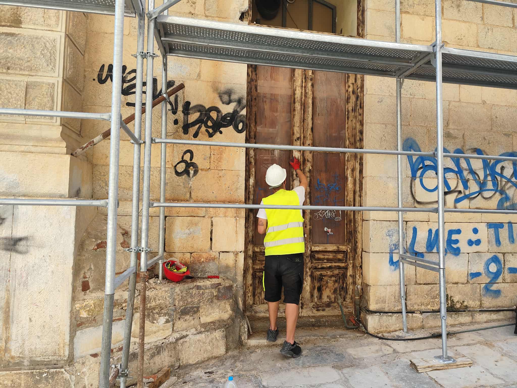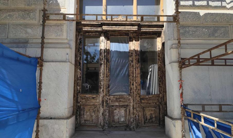 Αρχικά ο κ. Διακοδημητρίου ρωτήθηκε για το αν προχωρούν οι εργασίες μετά την προειδοποίηση έκπτωσης με τρόπο ικανοποιητικό. “Συνεχίζουν οι εργασίες και αυτές τις ημέρες καθαρίζουν τα κουφώματα στη δεξιά πλευρά του Δημαρχείου και αφαιρούν τους παλιούς χρωματισμούς και τους κόκκους και ό,τι άλλο έχουν, ώστε να διαπιστώσουν τα σαθρά σημεία και σε τι έκταση χρήζουν αποκατάστασης”, ανέφερε, επισημαίνοντας πως “τις προηγούμενες ημέρες έγιναν αποκαλύψεις σε διάφορα σημεία, σε σοβάδες και θα δούμε πώς θα καθαριστούν και τα μάρμαρα”. Όπως διαβεβαίωσε “αυτές οι εργασίες γίνονται και στην πίσω όψη και στην πλαϊνή”.