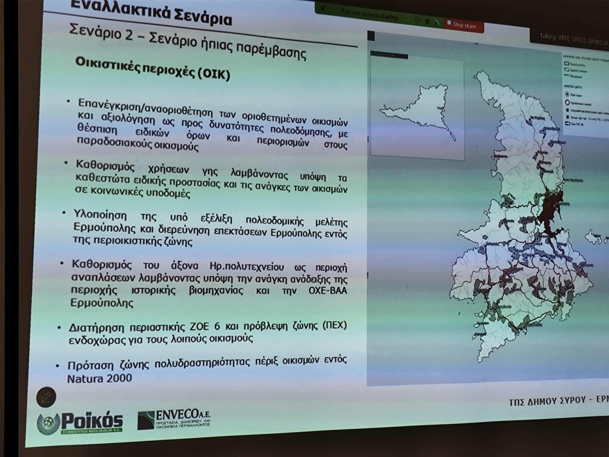 Τα τρία εναλλακτικά σενάρια για την χωρική ανάπτυξη της Σύρου τα επόμενα χρόνια, στο πλαίσιο εκπόνησης του Τοπικού Πολεοδομικού Σχεδίου για την πρωτεύουσα των Κυκλάδων, παρουσιάστηκαν χθες, στο Δημαρχιακό Μέγαρο, με τη συμμετοχή πολιτών, μηχανικών και εκπροσώπων Συλλόγων, καθώς επίσης της Δημοτικής Αρχής και της αντιπολίτευσης του Δήμου.