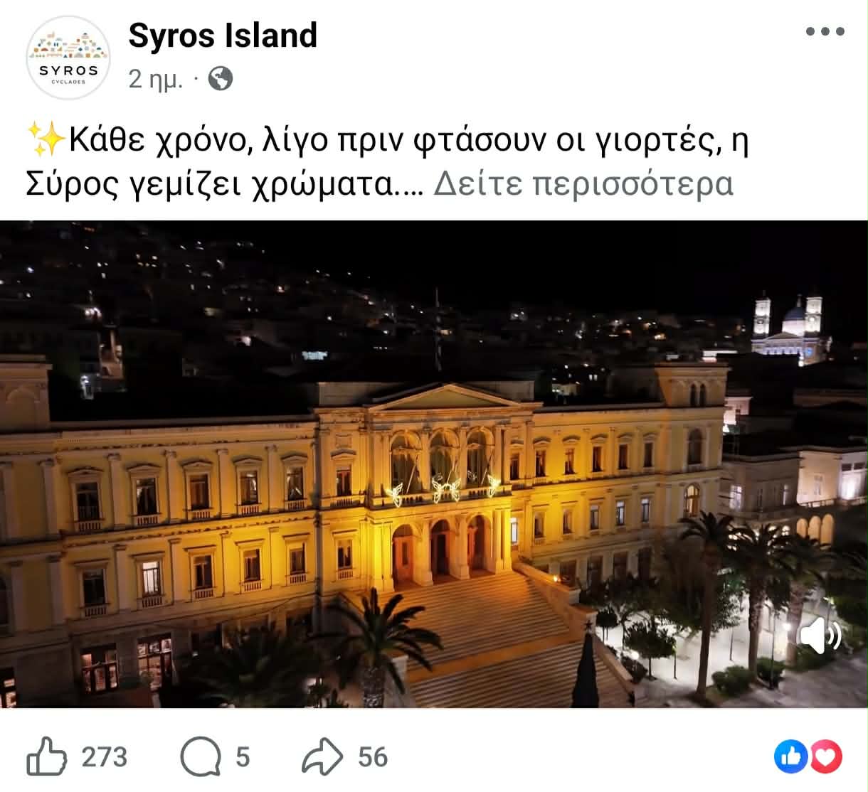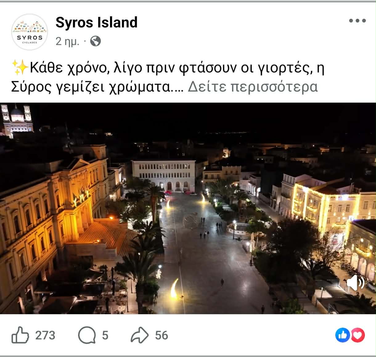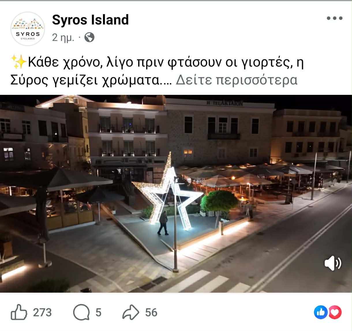 Ειδικότερα, ο Δήμος Σύρου – Ερμούπολης “τρέχει” ήδη τις αναρτήσεις για την εορταστική περίοδο στο νησί, προβάλλοντας εικόνες και βίντεο στοχευμένα στην αγορά της Θεσσαλονίκης. “Έχει αρχίσει ήδη και “τρέχει” για πρώτη φορά για τη Σύρο - όσον αφορά στα Χριστούγεννα -, προωθητική ενέργεια, μέσω των social media. Αρχίσαμε πιλοτικά με το πρόγραμμα των Χριστουγέννων και τις εκδηλώσεις που είναι προγραμματισμένες σε συνεργασία πάντα με το Τμήμα Πολιτισμού και την αντιδήμαρχο. Επίσης με ένα προωθητικό βίντεο που αποτυπώνει την Ερμούπολη στολισμένη, για το οποίο φρόντισε το Λιμενικό Ταμείο Σύρου”, σημείωσε πρωτίστως ο αντιδήμαρχος Τουρισμού, λέγοντας πως “υπάρχουν ήδη αναρτήσεις με υλικό για τη Σύρο στις σελίδες της (syrosisland) σε Instagram, Facebook καθώς και στο Tik Tok προκειμένου να τονώσουμε την επισκεψιμότητα στο νησί, την περίοδο των εορτών των Χριστουγέννων. Είναι κάτι που έχει ανάγκη το νησί και προς τα εκεί κοιτάζουμε”. Σύμφωνα με όσα υπογράμμισε, “αρχίζουμε σιγά σιγά γιατί κατανοούμε όλοι πως η επισκεψιμότητα αυτό το διάστημα θα τονώσει και τις επιχειρήσεις”.