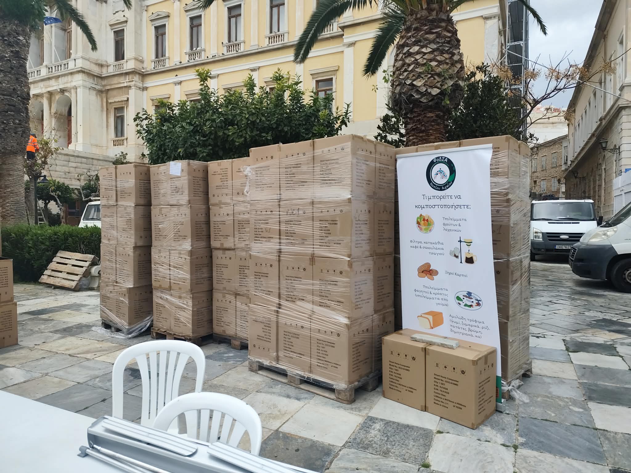 Στη Σύρο, χθες, εκτός από τον γενικό διευθυντή του ΦΟΔΣΑ Ν. Αιγαίου, Χρήστο Γαμβρούδη και ένα συνεργείο ανθρώπων που εξυπηρέτησαν τους πολίτες στην απόκτηση των κομποστοποιητών, βρέθηκε και ο περιφερειάρχης Ν. Αιγαίου, Γιώργος Χατζημάρκος. Ο ίδιος μίλησε στην “Κοινή Γνώμη” για τη συγκεκριμένη προσπάθεια, η οποία εξήγησε πως “εντάσσεται σε μια ευρύτερη ευρωπαϊκή στρατηγική για τη μετάβαση σε πιο βιώσιμα και φιλικά προς το περιβάλλον πρότυπα καθημερινής ζωής”.