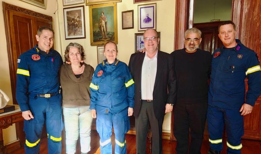 O δήμαρχος Σύρου – Ερμούπολης, Αλέξανδρος Αθανασίου υποδέχθηκε σήμερα, Τρίτη 3 Φεβρουαρίου 2026, στο γραφείο του, τη νέα διοικήτρια της ΔΙ.Π.Υ.Ν. Κυκλάδων, πύραρχο Γεωργία Τσάφου, καθώς και τον διοικητή της Πυροσβεστικής Υπηρεσίας Ερμούπολης, αντιπύραρχο Παναγιώτη Μαυραγάνη, με αφορμή την ανάληψη των καθηκόντων της.
