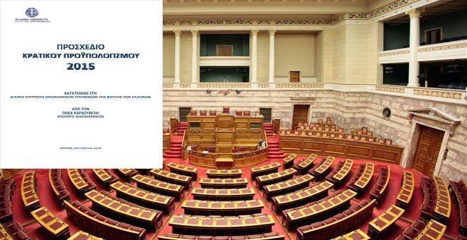 Αύξηση του πρωτογενούς πλεονάσματος, συρρίκνωση των κρατικών ελλειμμάτων και εφαρμογή των μέτρων μερικής ανακούφισης των πολιτών περιλαμβάνει ο προϋπολογισμός του 2015.