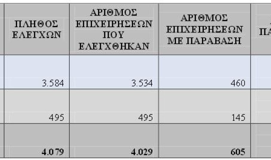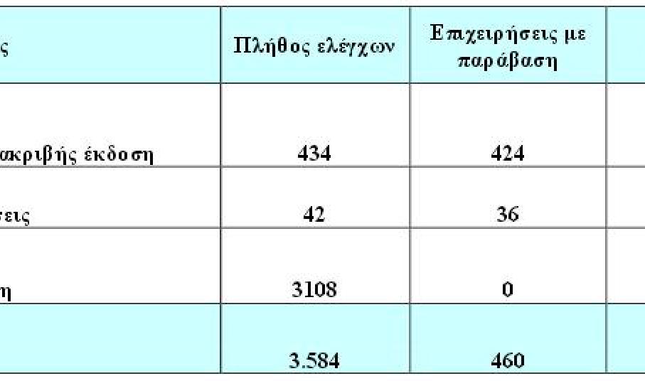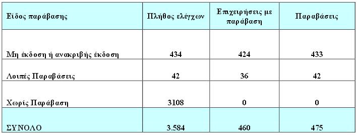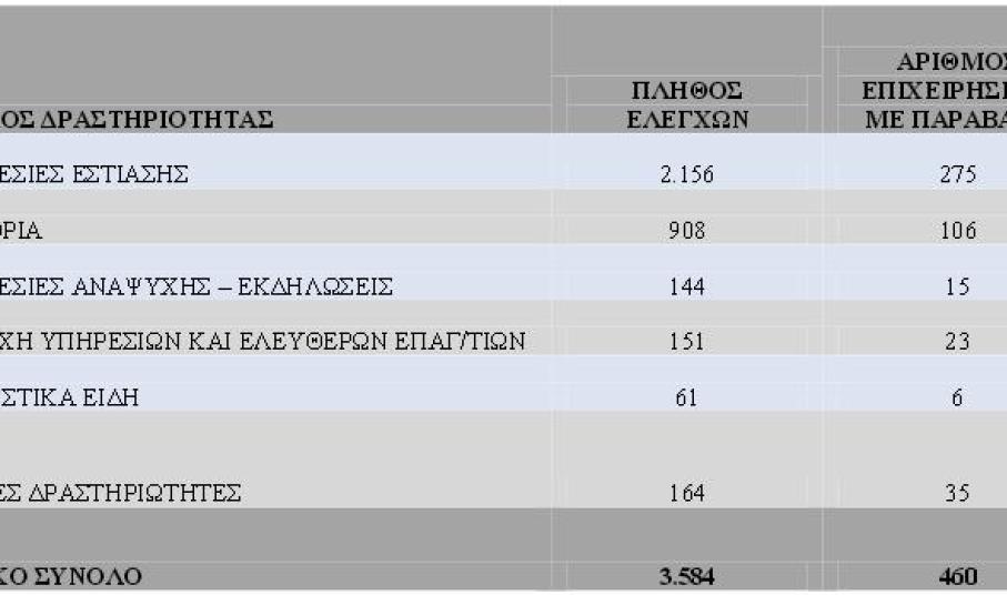 Οι παραβάσεις που διαπιστώθηκαν από τους ελέγχους αφορούν κυρίως, σε ποσοστό