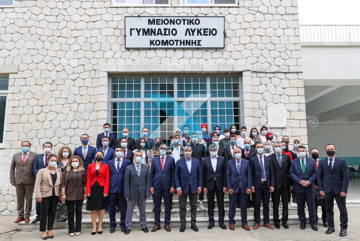 Ο Τούρκος ΥΠΕΞ κατέφτασε στον επόμενο σταθμό, το Μειονοτικό Γυμνάσιο-Λύκειο Κομοτηνής Τζελάλ Μπαγιάρ, όπου συνέβη ένα απίστευτο περιστατικό. Τον Τούρκο ΥΠΕΞ συνοδεύει αποστολή δημοσιογραφικών οργανισμών από την Τουρκία, στους οποίους επιτράπηκε η είσοδος μαζί με τον Τούρκο ΥΠΕΞ, ενώ την ίδια ώρα τα δεκάδες ελληνικά ΜΜΕ, περιφερειακά και πανελλαδικά, έμειναν απέξω! Παρά τις έντονες διαμαρτυρίες, δεν δόθηκε εντολή, ώστε να επιτραπεί η είσοδος και στους Έλληνες δημοσιογράφους. Μάλιστα, στο σχολείο υπάρχει κι αντιπροσωπεία μαθητών, που υποδέχθηκε τον Τούρκο ΥΠΕΞ, παρότι είναι Κυριακή και το σχολείο είναι κανονικά κλειστό. Μετά την επίσκεψή του στο σχολείο, ο Τούρκος ΥΠΕΞ έκανε μία σύντομη περιήγηση περιμετρικά του σχολείου, όπου και συνομίλησε με λιγοστούς κατοίκους που βρίσκονταν στο σημείο. Σύμφωνα με τους κατοίκους, ο Τσαβούσογλου τούς μετέφερε… χαιρετίσματα από τον Ερντογάν.