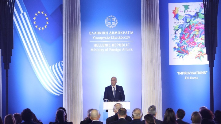 Ελλάδα και Αλβανία «απολαμβάνουν εξαιρετικές σχέσεις», υπογράμμισε ο υπουργός Εξωτερικών Νίκος Δένδιας, σε ομιλία του στα εγκαίνια της έκθεσης «Improvisations» του πρωθυπουργού της Αλβανίας Έντι Ράμα στο Ζάππειο Μέγαρο.