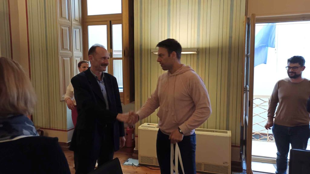Στη συνάντηση, που πραγματοποιήθηκε στο δημαρχιακό μέγαρο, συμμετείχαν ο Ευάγγελος Αποστολάκης και οι αντιδημάρχοι Φραγκίσκος Βακόνδιος και Νίκος Σκευοφύλακας.