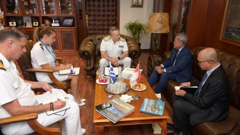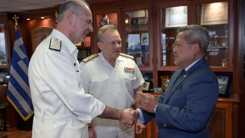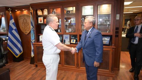Επίσκεψη στο Αρχηγείο του Λιμενικού Σώματος – Ελληνικής Ακτοφυλακής πραγματοποίησε την 18-09-2025, ο πρέσβης της Ινδονησίας στην Ελλάδα, Dr. Bebeb A.K. N.Djundjunan, όπου συναντήθηκε με τον αρχηγό του Λ.Σ.–ΕΛ.ΑΚΤ., αντιναύαρχο Λ.Σ. Τρύφωνα Κοντιζά, καθώς και τον Α’ υπαρχηγό, αντιναύαρχο Λ.Σ. Χρήστο Κοντορουχά.