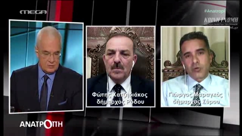 Σε εκπομπή πολιτικού περιεχομένου μεγάλου ιδιωτικού τηλεοπτικού σταθμού, τοποθετήθηκε την Δευτέρα, 4 Μαΐου, ο δήμαρχος Σύρου – Ερμούπολης, κ. Μαραγκός, σχετικά με τα θέματα του ΦΠΑ και της υποχρεωτικής χρήσης «πλαστικού χρήματος» στα νησιά.
