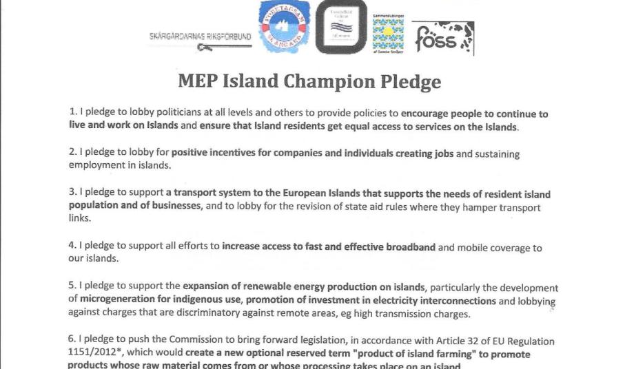 Συγκεκριμένα οι ενώσεις δικτύων μικρών Νησιών της Γαλλίας, Δανίας, Ελλάδας, Εσθονίας, Ιρλανδίας, Ιταλίας, Κροατίας, Σουηδίας, Φιλανδίας, της Σκοτίας και των αυτόνομων νησιών Αλλαντ καλούν όλους τους εθνικούς τους ευρωβουλευτές να συνυπογράψουν την επιστολή τους, εάν ενστερνίζονται και συμφωνούν με αυτήν. Συγκεκριμένα, μέσω της δήλωσής τους, οι ευρωβουλευτές αναλαμβάνουν την υποχρέωση να στηρίξουν δράσεις υπέρ της ευρωπαϊκής νησιωτικής πολιτικής.