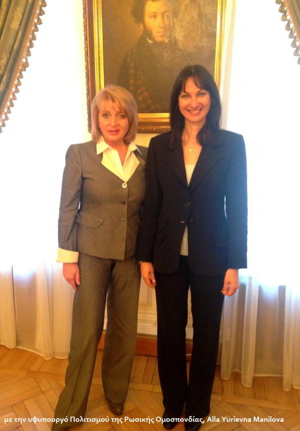 Ιδιαίτερα εποικοδομητικές συναντήσεις για την ενίσχυση της συνεργασίας Ελλάδας-Ρωσίας στον τουρισμό είχε η Αν. Υπουργός Οικονομίας Ανάπτυξης και Τουρισμού καΈλενα Κουντουρά με την υφυπουργό Πολιτισμού της Ρωσικής Ομοσπονδίας, κα Alla Υurievna Manilova και τον επικεφαλής του Ομοσπονδιακού Οργανισμού Τουρισμού της Ρωσίας Rostourism, κ. Οleg Safonov.