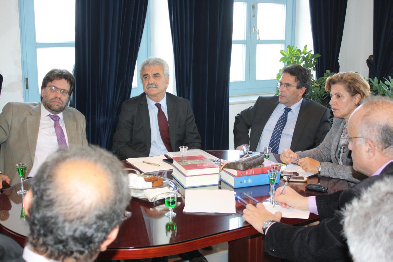 Με θέμα τα εν εξέλιξη έργα του Δήμου Νάξου, πραγματοποιήθηκε χθες σύσκεψη σε χώρο του δημαρχείου, όπου παραβρέθηκαν η κ. Γενικός, ο κ. Περιφερειάρχης, ο Δήμαρχος Μανόλης Μαργαρίτης, οι Περιφερειακοί Σύμβουλοι Γιώργος Γκούφας και Λάζαρος Θεόφιλος, οι Αντιδήμαρχοι Τοτόμης Πρωτονοτάριος, Δημήτρης Λιανός και Μανόλης Πολυκρέτης, ο Πρόεδρος του Δημοτικού Συμβουλίου Φώτης Μαυρομάτης, ο Αντιπρόεδρος του Δημοτικού Λιμενικού Ταμείου Δημήτρης Καραπάτης, ο Πρόεδρος του ΝΟ.Π.Π.Α.Π.Π.Π.Α. Ιάκωβος Ναυπλιώτης και ο Προϊστάμενος της Τεχνικής Υπηρεσίας του Δήμου, Μανόλης Ζουγανέλης.