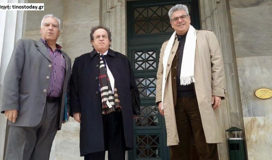 Επιπλεον, ο δημοτικός σύμβουλος, κ. Μανώλης Σώχος, εκπρόσωπος του δημάρχου Τήνου, κ. Σ. Ορφανού, μαζί με τα μέλη της Συντονιστικής Επιτροπής Αγώνα για το Π.Ι.Ι.Ε. Τήνου, κ.κ. Ιωάννη Αλαβάνο, δικηγόρο και Ξενοφώντα Μπρουτζάκη, δημοσιογράφο, επισκέφθηκαν την Πέμπτη, 12 Μαρτίου, το ελληνικό Κοινοβούλιο, όπου είχαν σειρά επαφών, τόσο με Κοινοβουλευτικές Ομάδες, όσο και με τους τέσσερις Κυκλαδίτες Βουλευτές, με σκοπό την λήψη νομοθετικής πρωτοβουλίας για το Π.Ι.Ι.Ε. Τήνου, σε επιτέλεση των αναφερομένων στην επιστολή του δημάρχου.