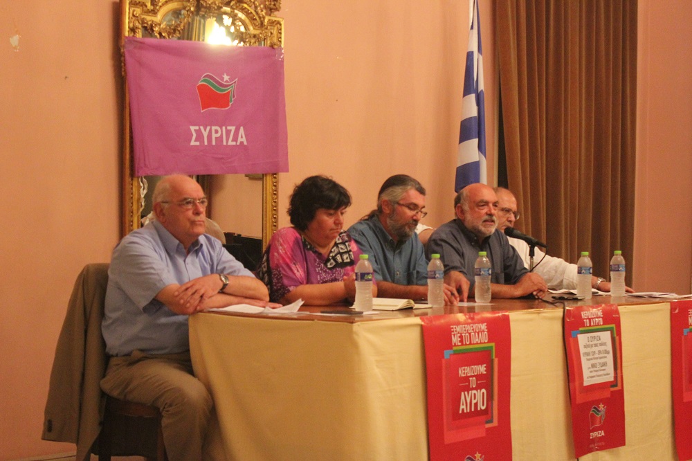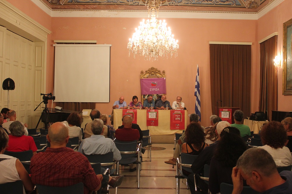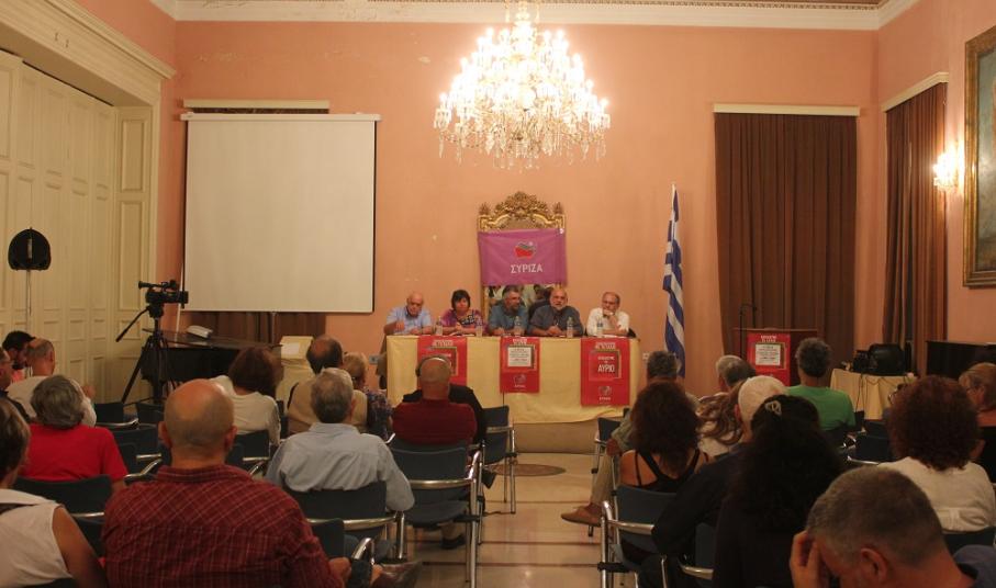 Παρουσία του π. Υπουργού Πολιτισμού, Νίκου Ξυδάκη πραγματοποιήθηκε η επίσημη προεκλογική ομιλία του ΣΥΡΙΖΑ στη Σύρο, προχθές το βράδυ στο Πνευματικό Κέντρο, με τη συμμετοχή και των υποψήφιων βουλευτών για τις Κυκλάδες, Νίκου Συρμαλένιου, Αντώνη Συρίγου και Χριστίνας Ευθυμιάτου (Οικολόγοι Πράσινοι).