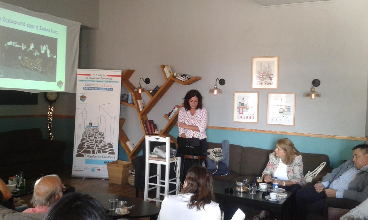 Με σημαντική συμμετοχή φορέων και εκπροσώπων της τοπικής κοινωνίας αλλά και της επιχειρηματικής κοινότητας του νησιού πραγματοποιήθηκε στην Άνδρο το πρώτο OpenTourism Κυκλάδων, το περασμένο Σάββατο, σε γνωστό cafe, στο πλαίσιο του εορτασμού της Παγκόσμιας Ημέρας Τουρισμού.