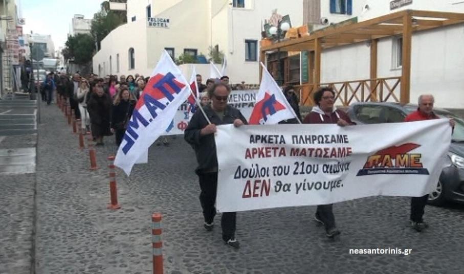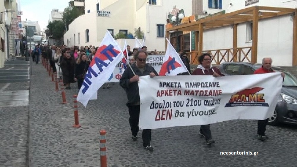 Στον αγώνα των απεργιακών κινητοποιήσεων, ενάντια στην ψήφιση του νέου νομοσχεδίου για το ασφαλιστικό, συμμετείχαν εκπρόσωποι επαγγελματικών σωματείων, συνταξιούχοι, νέοι και νέες, άνεργοι, τόσο στη Μήλο, όσο και στη Σαντορίνη.
