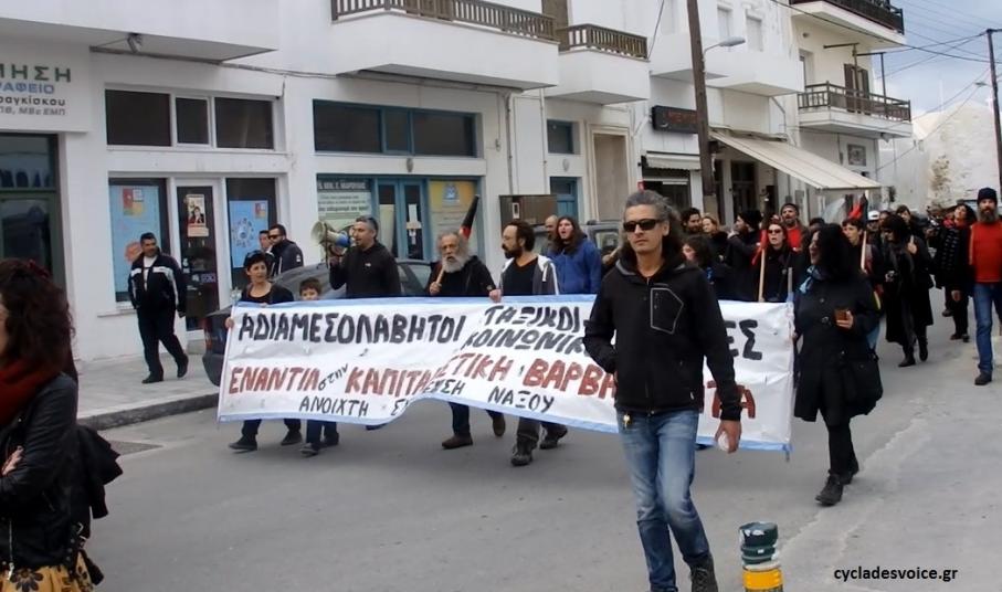 Επιτυχημένη θα μπορούσε να χαρακτηριστεί η συμμετοχή των Ναξίων στην απεργιακή συγκέντρωση, η οποία πραγματοποιήθηκε στη πλατεία Μανδηλαρά, με το ΠΑΜΕ να παραμένει πιστό στην πραγματοποίηση δικής του ξεχωριστής διαμαρτυρίας, με σημείο συγκέντρωσης την κεντρική πλατεία της παραλίας και τελική κατάληξη την καθιερωμένη πραγματοποίηση πορείας από τους μετέχοντες στις συγκεντρώσεις, προς το Νοσοκομείο-Κ.Υ. Νάξου. Σημειώνεται, πως στην πορεία του ΠΑΜΕ, συμμετείχαν η Ένωση Συνταξιούχων Νάξου, η Λαϊκή Επιτροπή Κωμιακής, Ξενοδοχοϋπάλληλοι και άλλοι.