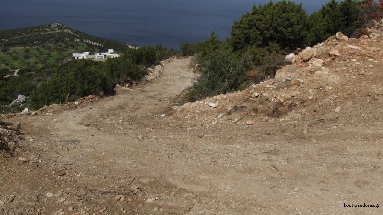 Σύμφωνα με το Σύλλογο, “μετά τη συζήτηση που ακολούθησε στην Τουριστική Επιτροπή του Δήμου και στο Δημοτικό Συμβούλιο και εξετάζοντας τα στοιχεία της περιοχής, ο Δήμος υπέβαλε μήνυση κατά αγνώστων μέσω του Δημάρχου, για εκτεταμένες τσιμεντοστρώσεις και άλλες εργασίες που είχαν γίνει σε τμήμα μονοπατιού και στο αγροτικό οδικό δίκτυο, χωρίς καμία αδειοδότηση ή μελέτη. Ενάμιση χρόνο μετά, όχι μόνο δε σταμάτησαν οι εργασίες, αλλά συνεχίστηκαν και σε μεγαλύτερο μήκος και έκταση του δρόμου, χωρίς κανέναν έλεγχο και αδειοδότηση από τις αρμόδιες Υπηρεσίες. Ως εκ τούτου, είμαστε υποχρεωμένοι ως Σύλλογος να προστατεύσουμε το τουριστικό μας προϊόν από την αλλοίωση του φυσικού τοπίου και από κάθε είδους παρεμβάσεις, που στερούνται μελετών και επηρεάζουν αρνητικά τη γενικότερη εικόνα του νησιού”.