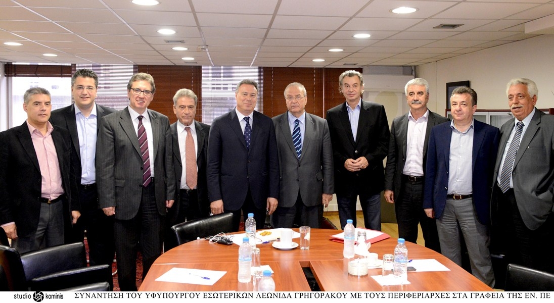 Με τον αναπληρωτή υπουργό Εσωτερικών, Λεωνίδα Γρηγοράκο, συναντήθηκαν τα μέλη του Διοικητικού Συμβουλίου της ΕΝΠΕ, προκειμένου να συζητήσουν τα καίρια θέματα που απασχολούν τις Περιφερειακές αυτοδιοικήσεις.