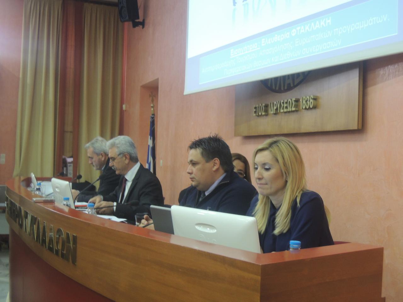 Εισηγήτρια του θέματος ήταν η αρμόδια Αντιπεριφερειάρχης για τον Τουρισμό, Ελευθερία Φτακλάκη, η οποία αναφέρθηκε ότι η στρατηγική για την απασχόληση βασίζεται σε πολιτικό όραμα, σε στόχους και σε προτεινόμενες δράσεις, οι οποίες έχουν στόχο την καταπολέμηση της ανεργίας στα νησιά.