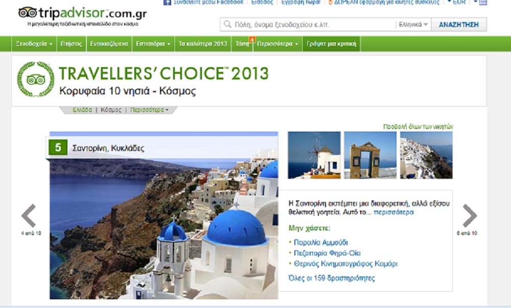 Όπως τονίζει η κ. Φτακλάκη, αυτά, “επιβεβαιώνουν τη στρατηγική και τις εντατικές προσπάθειες της Διεύθυνσης Τουρισμού και ανταμείβουν τις κοινωνίες των νησιών μας για τη συνέπεια, τον επαγγελματισμό και την ποιότητα που επέδειξαν στους ξένους επισκέπτες κατά την περασμένη τουριστική περίοδο”. Συγκεκριμένα, στην ιστοσελίδα του tripadvisor “αναφέρονται οι δέκα πιο επιτυχημένοι ελληνικοί προορισμοί του 2013 μετά από αξιολόγηση επισκεπτών και χρηστών του ιστότοπου”, όπου η Περιφέρεια Νοτίου Αιγαίου εκπροσωπείται “από τη Σαντορίνη, τη Μύκονο, τη Ρόδο, τη Νάξο και τη Θηρασιά”.