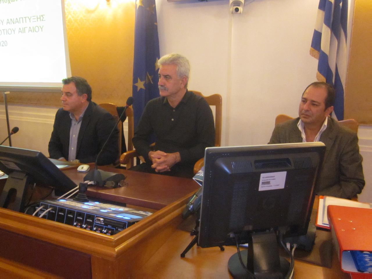 Tο Περιφερειακό Επιχειρησιακό Πρόγραμμα Γεωργίας, Κτηνοτροφίας & Αλιείας για την περίοδο 2014 – 2020 παρουσιάστηκε από τον Περιφερειάρχη Ν. Αιγαίου Γιάννη Μαχαιρίδη, τον Αντιπεριφερειάρχη Αγροτικής Ανάπτυξης Αντώνη Χατζηιωάννου και τον Γενικό Διευθυντή Γιάννη Πουλή,