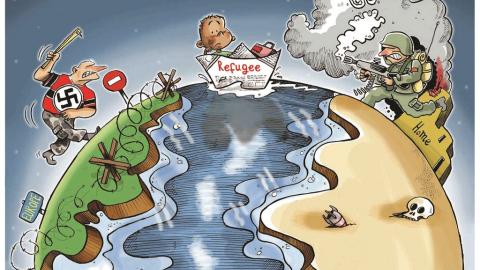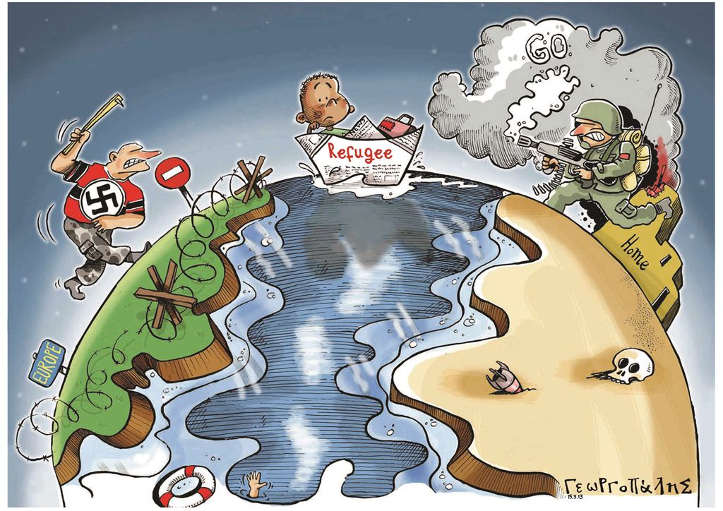 Μία «γροθιά» στον πυρήνα της Ευρώπης, δίνουν οι Έλληνες γελοιογράφοι, μέσω της έκθεσης, με θέμα το προσφυγικό ζήτημα, «Το Μετέωρο Βήμα», η οποία συνδιοργανώνεται από την Περιφέρεια Νοτίου Αιγαίου.