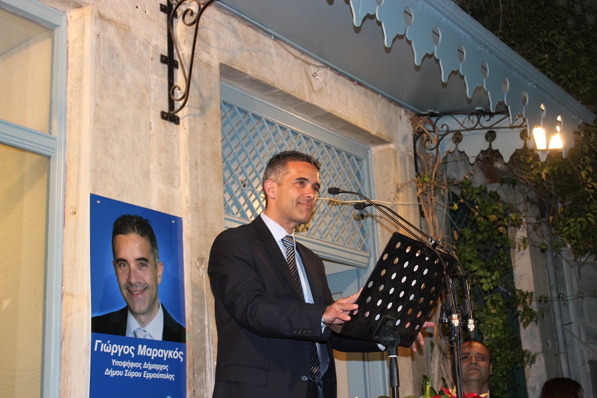 Ο Γιώργος Μαραγκός αφού χαιρέτησε τους παρευρισκομένους εξέφρασε την ανάγκη να συμμετέχουν οι πολίτες στην εκλογική αναμέτρηση προκειμένου “νηφάλια και με ωριμότητα σκέψης” να επιλέξουν τον συνδυασμό που θα μετατρέψει το νησί, στη “Σύρο που αξίζουμε”.