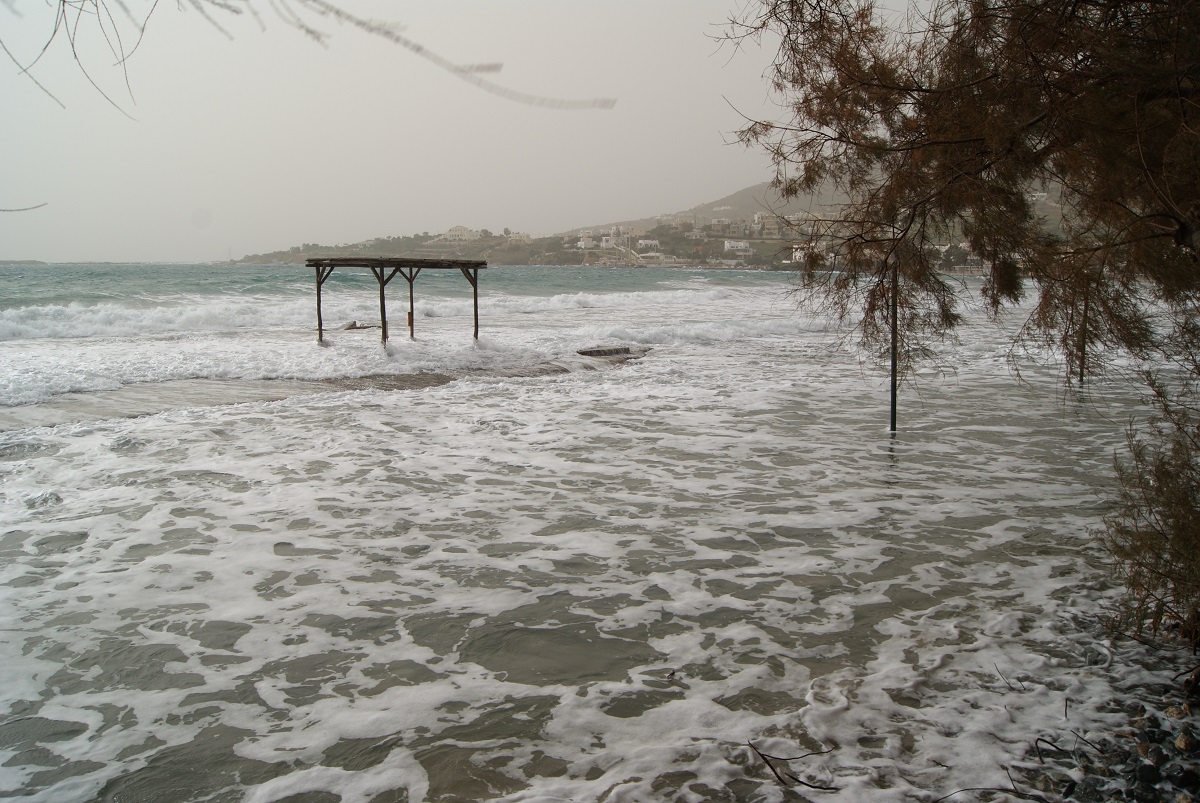 Η σφοδρή κακοκαιρία χτύπησε το νότιο τμήμα της Σύρου