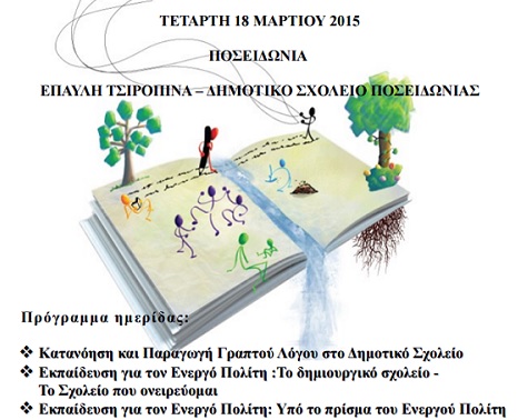 Υπενθυμίζεται ότι η ημερίδα θα πραγματοποιηθεί από την Περιφερειακή Διεύθυνση Πρωτοβάθμιας και Δευτεροβάθμιας Εκπαίδευσης Νοτίου Αιγαίου και τη 2η Εκπαιδευτική Περιφέρεια Δημοτικής Εκπαίδευσης Κυκλάδων την Τετάρτη 18 Μαρτίου 2015 στην Έπαυλη Τσιροπινά στην Ποσειδωνία.