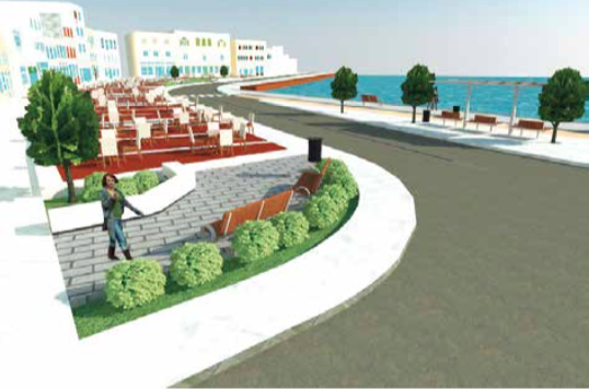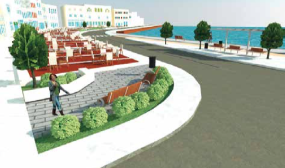 -Δημιουργία ποδηλατοδρόμου, χώρου πλατείας, χώρου προσωρινής στάθμευσης οχημάτων, καθιστικών χώρων με σκίαστρα