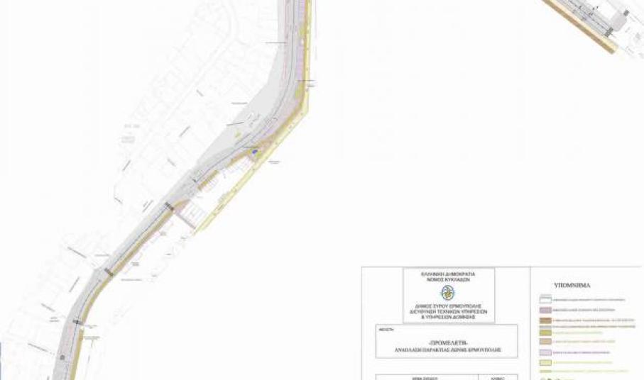 Στην ανάπλαση της παραλιακής ζώνης λιμένα Ερμούπολης στο τμήμα από την Πυροσβεστική Υπηρεσία μέχρι την πλατεία Κανάρη.