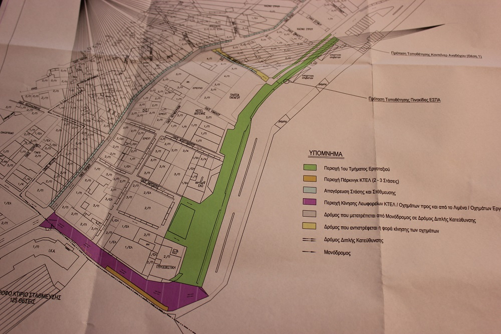 Κατά τη διάρκεια της συνεδρίασης των μελών της Κοινότητας, υπήρξε αναλυτική ενημέρωση για το σύνολο των αλλαγών που αποφασίστηκε να εφαρμοσθούν καθ΄ όλη τη χρονική διάρκεια της διεκπεραίωσης των εργασιών της Α΄ Φάσης από την πλευρά του αρμόδιου Τμήματος της Διεύθυνσης Τεχνικών Υπηρεσιών και Υπηρεσιών Δόμησης, με τη βοήθεια ειδικού σχεδιαγράμματος που είχαν στη διάθεσή τους οι σύμβουλοι. Υπενθυμίζεται ότι το πρώτο τμήμα του έργου ξεκινά από το ύψος του κτιρίου της Πυροσβεστικής Υπηρεσίας και ολοκληρώνεται στα στέγαστρα του λιμένα της Ερμούπολης.