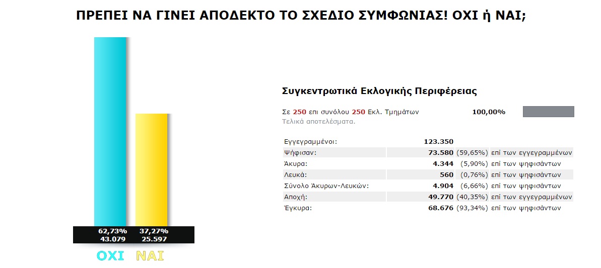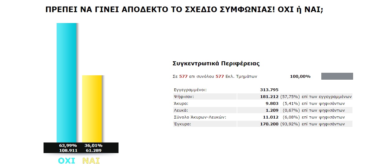 Με ζητούμενο την διατήρηση της ομοψυχίας του ελληνικού λαού, κόντρα στις σειρήνες που προκάλεσαν ένα διχαστικό κλίμα, οι πολίτες των νησιών κατέδειξαν με την ψήφο τους την αντίδραση τους και προς τους κατά τόπους πρόθυμους υποστηρικτές των εκβιαστικών τακτικών και έντονου εκφοβισμού, που υπαγόρευσαν συγκεκριμένα πολιτικά κέντρα.