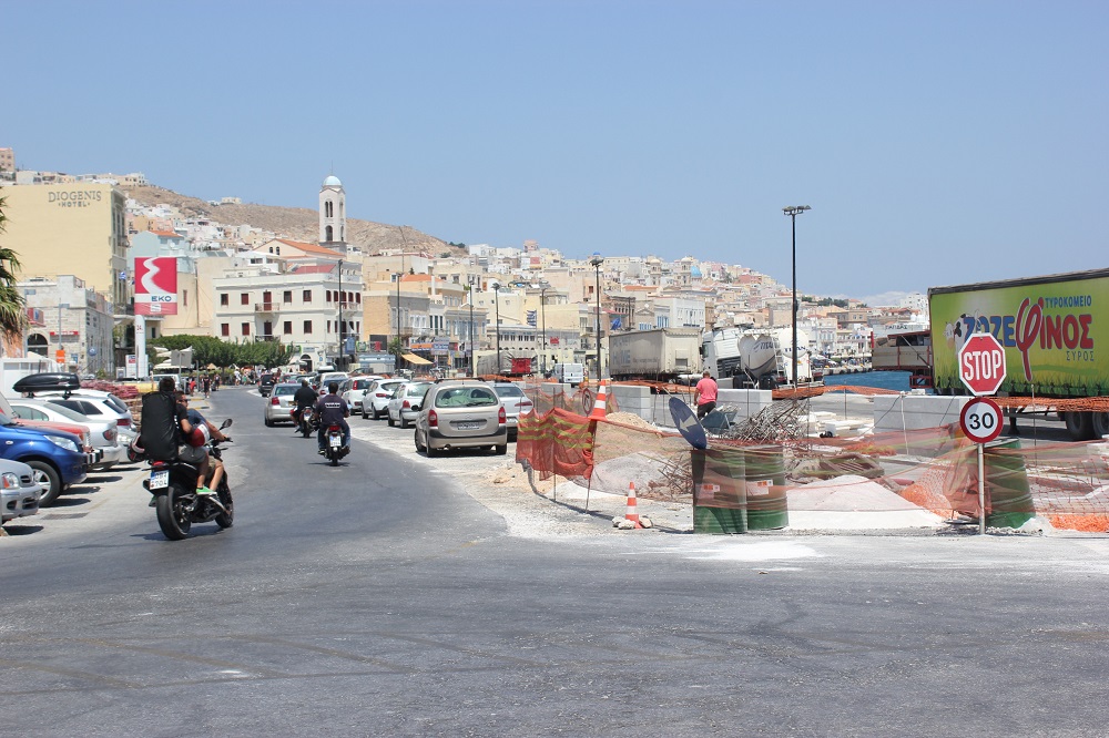 Την πλέον κάκιστη εικόνα αντικρίζει ο κάθε πολίτης κι επισκέπτης της Σύρου κατά την άφιξή του στο λιμάνι της Ερμούπολης, με τις εργασίες της Α΄ φάσης να μην έχουν διεκπεραιωθεί αρχές Αυγούστου, ενώ το σημείο του εργοταξίου που έχει δοθεί στη διάθεση των οδηγών να έχει μετατραπεί σε χώρο στάθμευσης, όπου συνωστίζονται καθημερινά δεκάδες οχήματα και δίκυκλα.