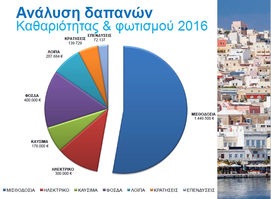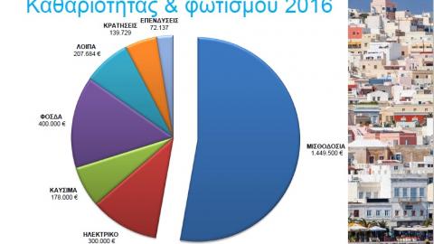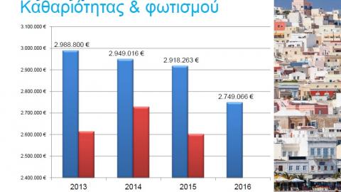 Προκειμένου να μην επωμιστούν μεγαλύτερο οικονομικό φορτίο οι δημότες, ο κ. Παπαμανώλης, υπογράμμισε πως, αναγκαστικά πρέπει να περιοριστούν οι δαπάνες καθαριότητας και φωτισμού, με τον αντιδήμαρχο Καθαριότητας αλλά και τον πρόεδρο του ΦΟΔΣΑ, Μάριο Βουτσίνο και Μάρκο Πρίντεζη αντίστοιχα, να σημειώνουν πως, ναι μεν είναι ένα μεγάλο βαρίδι αυτή η μείωση κονδυλίων, δεσμευόμενοι ωστόσο, πως αυτές οι περικοπές δεν θα προκαλέσουν περιορισμό στις υπηρεσίες προς τους πολίτες. Προτού αναλύσει τις δαπάνες μία προς μία, σημείωσε πως, ο νέος προϋπολογισμός των ανταποδοτικών τελών του 2016 ανέρχεται σε 2.749.066 ευρώ, ενώ ο περυσινός άγγιζε τα 2.918.263 ευρώ. Αυτό το ποσό για την επόμενη χρονιά, αναλύεται σε 1.449.500 ευρώ για τη μισθοδοσία, σε 178.000 ευρώ για καύσιμα, σε 400.000 ευρώ για τον ΦΟΔΣΑ (ανακύκλωση κλπ), σε 300.000 για ηλεκτρικό αλλά και σε 72.137 ευρώ για επενδύσεις, σε 139.729 ευρώ για κρατήσεις και σε 207.684 ευρώ για λοιπά έξοδα.