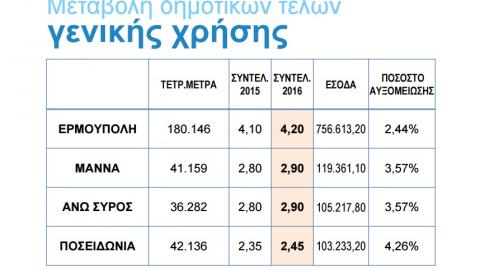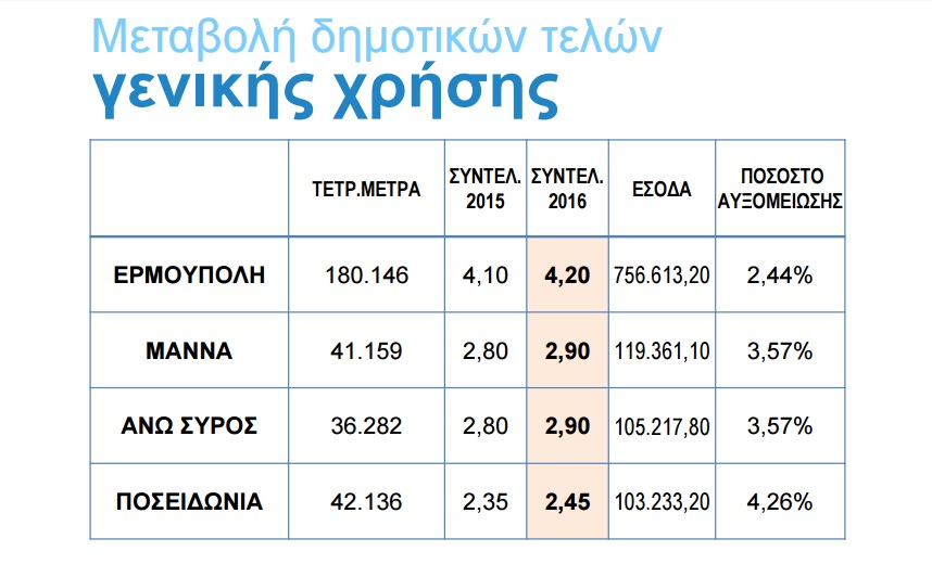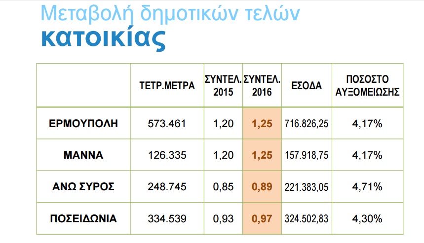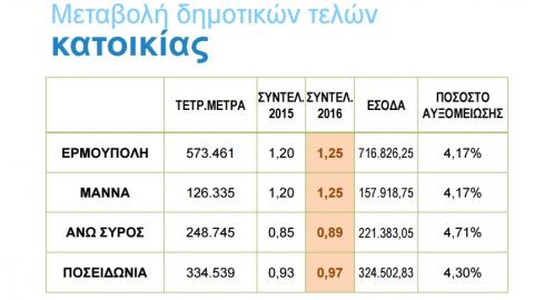 Κατά πλειοψηφία η αύξηση των συντελεστών των δημοτικών τελών σε ποσοστό 4,17% μεσοσταθμικά για το έτος 2016 στη Σύρο