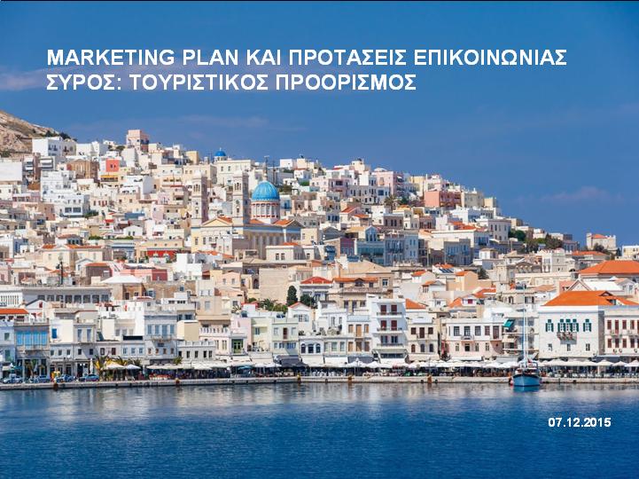 9.12.2015: Σε μία κεκλεισμένων των θυρών συνάντηση, πραγματοποιήθηκε η παρουσίαση του Marketing Plan για την τουριστική προβολή της Σύρου, το οποίο αφορά σε προτάσεις επί των απαιτούμενων προωθητικών κινήσεων στην τουριστική αγορά, που αποτελούν συνέχεια της παρουσίασης που είχε γίνει και στην προηγούμενη Δημοτική Αρχή.