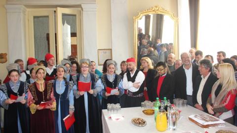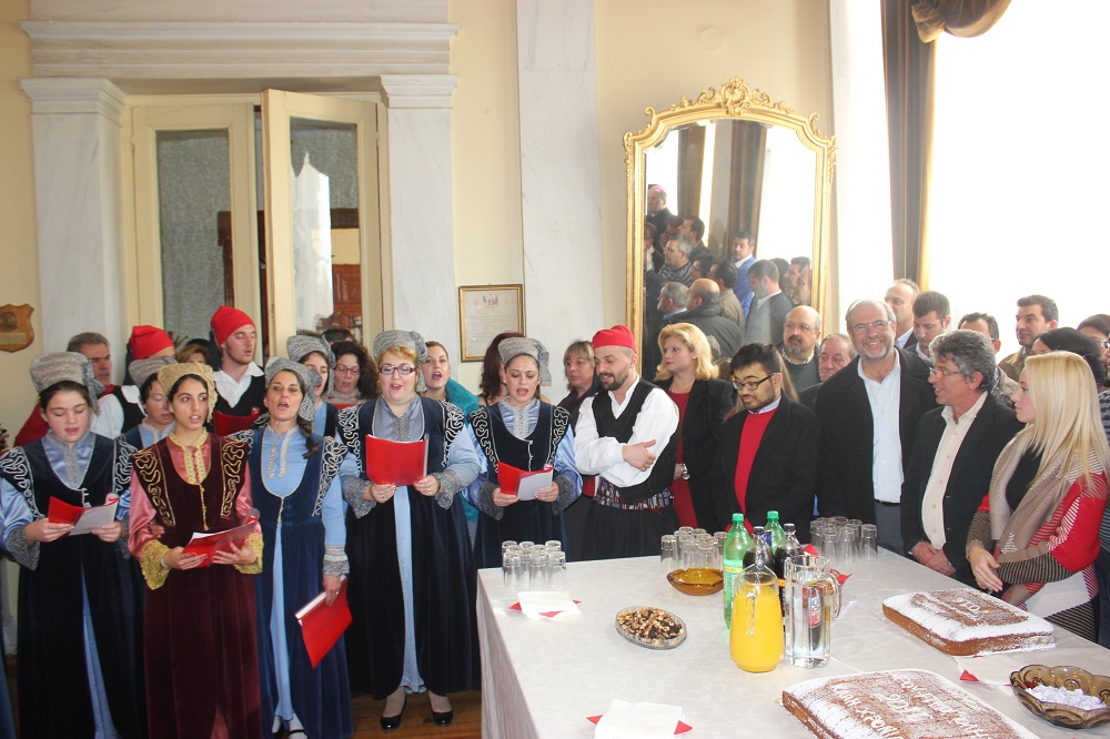 Των ευχών και των μηνυμάτων της προέδρου του δημοτικού συμβουλίου, Μαρίας Καζαντζάκη, του μέλους του ΔΣ του Σωματείου Εργαζομένων του Δήμου Σύρου – Ερμούπολης, Γιάννη Αλεξανδρή, καθώς επίσης του μέλους της Κίνησης Πολιτών Σύρου, Κομνηνού Στρογγύλη και του προέδρου της ομάδας βόλεϊ του Φοίνικα, Αντώνη Ρούσσου ακολούθησε η παρουσίαση των παραδοσιακών καλάντων από μέλη του Λυκείου Ελληνίδων Σύρου.