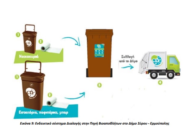 Όσον αφορά στη διαλογή των βιοαποβλήτων, προτείνεται η πιλοτική, αρχικά, εφαρμογή της οικιακής κομποστοποίησης, για την οποία θα γίνει προμήθεια και δωρεάν διανομή 1.000 οικιακών κομποστοποιητών, οι οποίοι θα διατεθούν σε κατοίκους, όλης της Σύρου, προκειμένου, έπειτα από την εφαρμογή ενός συστήματος καθοδήγησης των νοικοκυριών που έχουν ή πρόκειται να λάβουν και να λειτουργήσουν κάδο οικιακής κομποστοποίησης, θα παρακολουθείται και θα ελέγχεται, με δειγματοληπτικούς ελέγχους από το Δήμο. Επιπλέον, εισηγείται η διερεύνηση δημιουργίας μία νέας κατηγορίας χρέωσης των δημοτικών τελών καθαριότητας, από τις 7 που προβλέπονται στη σχετική νομοθεσία, με έκπτωση επί των δημοτικών τελών για τους δημότες που θα διαθέτουν και θα λειτουργούν κάδους οικιακής κομποστοποίησης.