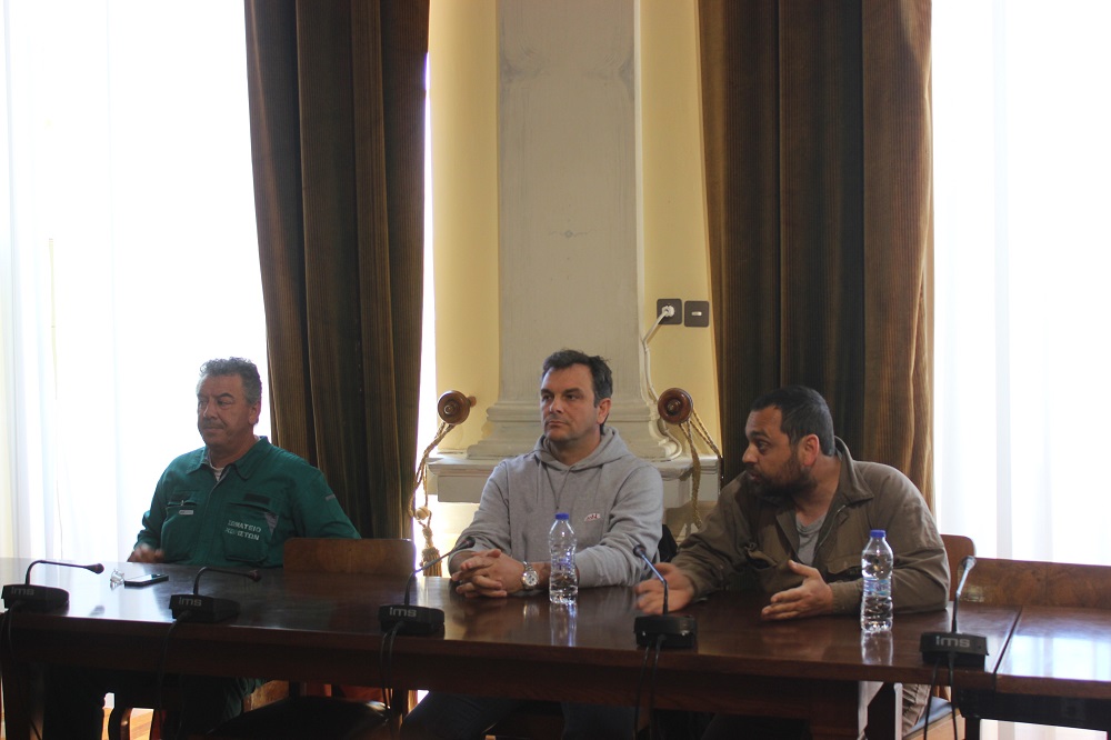 Πριν την έναρξη της συζήτησης θέμα ετέθη από τον πρόεδρο του Εργοστασιακού Σωματείου του Νεωρίου, Βαγγέλη Μάνθο, ο οποίος συνοδευόταν από 2 ακόμα μέλη, όσον αφορά στο ότι ενώ είναι μέλη και της Διοίκησης του Εργατικού Κέντρου, παρ’ όλα αυτά δεν γνώριζαν για τη συνάντηση και κατ’ επέκταση δεν κλήθηκαν σε αυτή.
