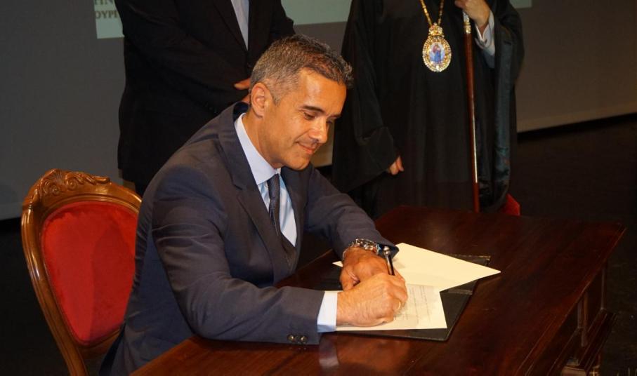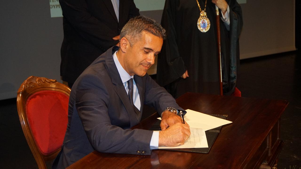 Αμέσως μετά την ομιλία του, ακολούθησε η ανάγνωση του μηνύματος του Καθολικού Επισκόπου Σύρου, αλλά και οι ευχές του Σεβασμιωτάτου Μητροπολίτη Σύρου, κ. Δωροθέου Β΄ και ολοκληρώθηκε η εκδήλωση με την υπογραφή του συμφώνου.