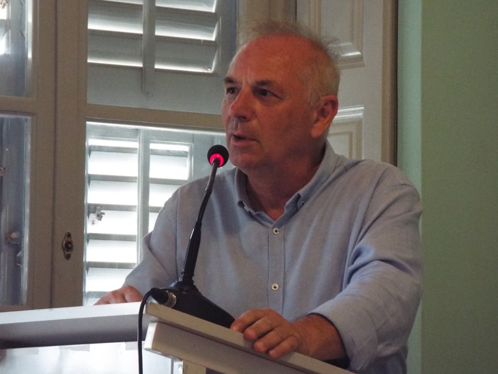 Προλογίζοντας τον κ. Κιουτσούκη, ο πρόεδρος του Εργατικού Κέντρου Κυκλάδων, κ. Μάρκος Βουτσίνος, αναφέρθηκε στη στενή σχέση και συνεργασία του ΕΚΚ με τον κ. Κιουτσούκη, τονίζοντας, πως υπήρξε πάντοτε αρωγός στα αιτήματα των εργαζομένων.