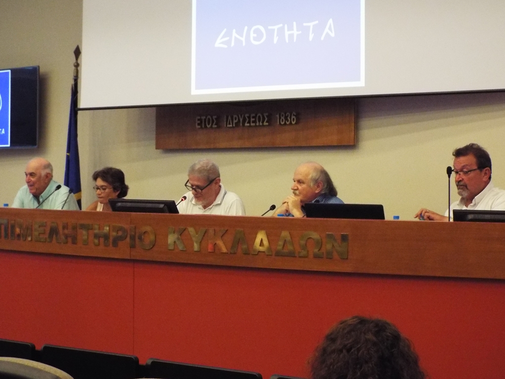 Στη συνεδριακή αίθουσα του Επιμελητηρίου Κυκλάδων, όπου πραγματοποιήθηκε η εκδήλωση, το παρών έδωσαν ο Αντιπεριφερειάρχης Νοτίου Αιγαίου, κ. Γιώργος Λεονταρίτης, ο πρόεδρος του Επιμελητηρίου Κυκλάδων, κ. Γιάννης Ρούσσος, εκ μέρους του Δήμου Σύρου-Ερμούπολης, ο κ. Ανδρέας Γιαλόγλου και ο κ. Κομνηνός Στρογγύλης, ο αντιπρόεδρος του Συλλόγου Μελετητών και Μηχανικών Κυκλάδων, ο πρόεδρος του Συλλόγου Συνταξιούχων του ΟΤΕ, εκπρόσωπος του Συλλόγου Συμβολαιογράφων, καθώς και του Συλλόγου Λογιστών, ο πρόεδρος του Δημοτικού Συμβουλίου Άνδρου, κ. Μπάλλας και η Νομική Σύμβουλος του Δήμου Άνδρου, ο Νομικός Σύμβουλος του Δήμου Πάρου, κ. Φιφλής, όπως και εκπρόσωπος του Ιατρικού Συλλόγου.