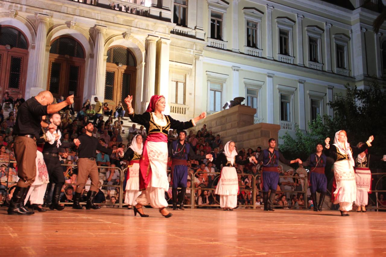 Τα τμήματα των Συλλόγων Ποντίων και Βορειοελλαδιτών, Κρητών, Ηπειρωτών και Στερεοελλαδιτών, αλλά και το προσκεκλημένο χορευτικό τμήμα των Πελοποννησίων Σύρου από τον Μορφωτικό Εκπολιτιστικό Σύλλογο Κυπαρισσίας συναντήθηκαν στην Πλατεία Μιαούλη, αποδεικνύοντας ότι η αγάπη για την πατρίδα και τις παραδόσεις δε γνωρίζει γεωγραφικά όρια.