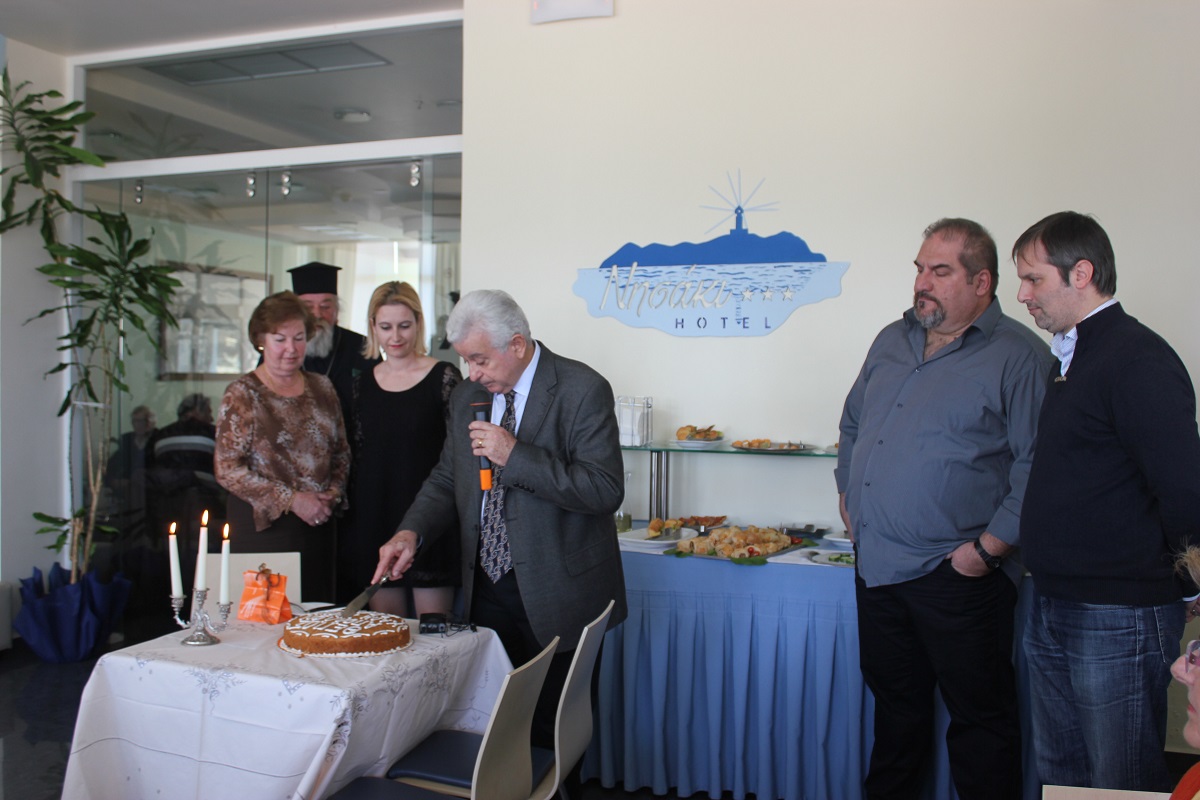 Εγκάρδιο καλωσόρισμα απηύθυνε ο πρόεδρος του Θεατρικού Πολιτιστικού Ομίλου Σύρου “Απόλλων”, Γιώργος Κανάκης σε όσους παρευρέθηκαν στο ξενοδοχείο “Νησάκι” χθες το πρωί στη συντροφιά των μελών του Ομίλου, τα οποία πραγματοποίησαν την κοπή της πρωτοχρονιάτικης πίτας για το έτος 2014.