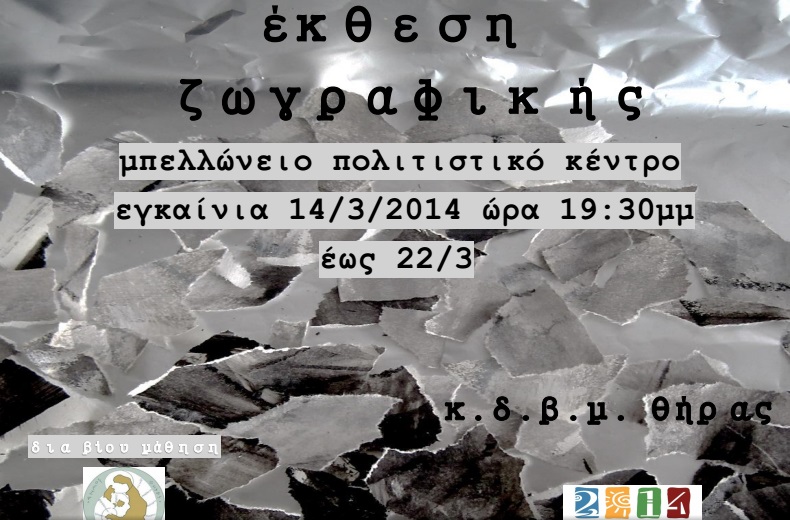 Η έκθεση εντάσσεται στο πλαίσιο των πολιτιστικών δράσεων του Δήμου Θήρας για το Έτος Πολιτισμού 2014 και θα διαρκέσει έως 22 Μαρτίου 2014.