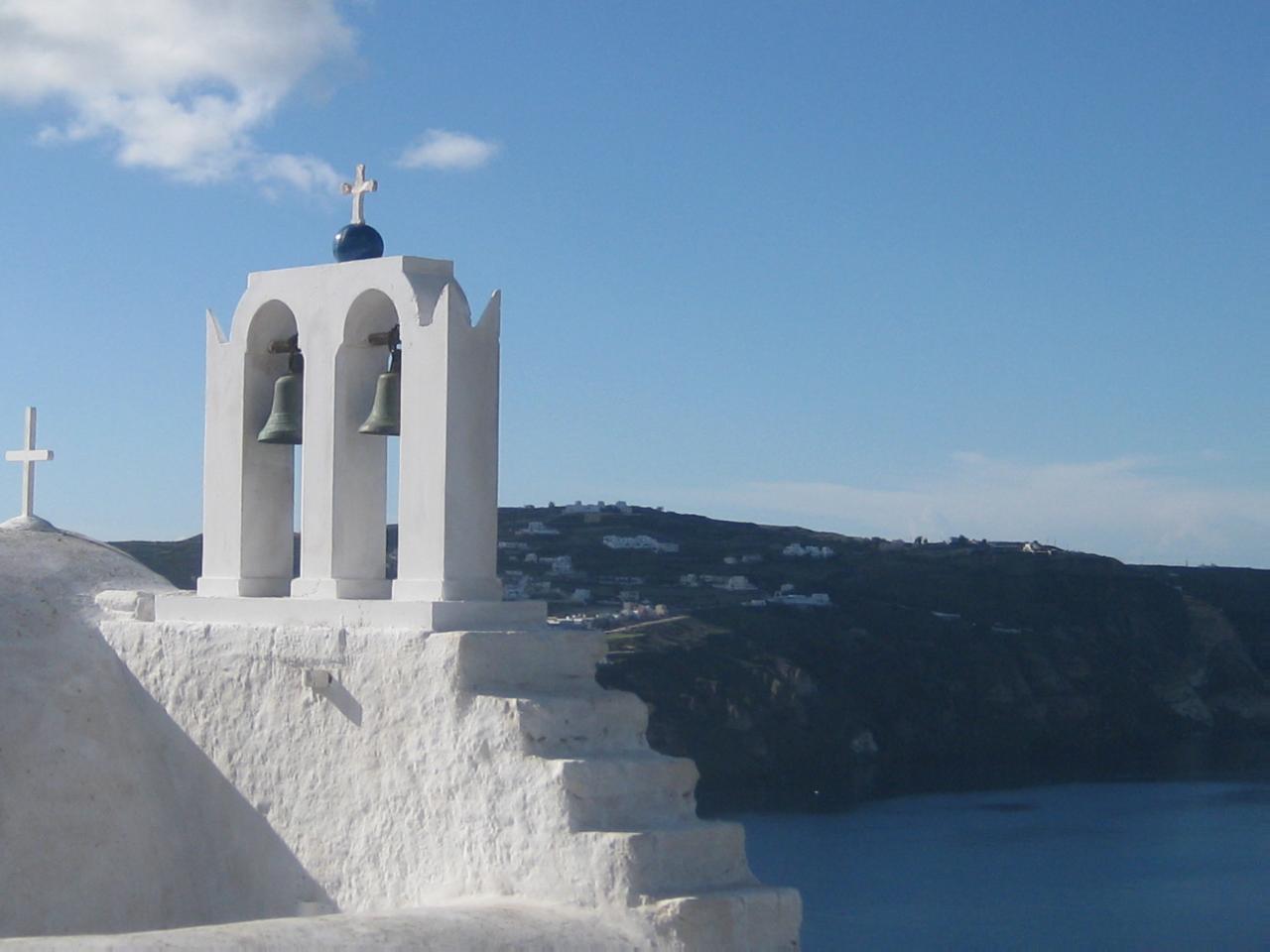 Στο πέρασμα του χρόνου ο άνθρωπος δημιούργησε και άλλους πολιτισμούς με τα ίχνη τους να είναι ορατά σε διάφορα σημεία του νησιού όπως η βασιλική της Αγ. Ειρήνης στην Περίσσα και η βασιλική της Επισκοπής στην Γωνιά αυθεντικά δείγματα βυζαντινού πολιτισμού και αργότερα κατά την ενετοκρατία η δημιουργία των Γουλάδων και Καστελιών. Τέλος, κατέληξε να φτιάξει σπίτια κρεμασμένα θαρρείς στην καλντέρα και μέσα στη γη (υπόσκαφα) με μια ιδιαίτερα λιτή αρχιτεκτονική που όμως εντυπωσιάζει τον επισκέπτη. Εντυπωσιακά είναι και τα εξωκλήσια με τα πολύ όμορφα καμπαναριά, έργα της λαϊκής αρχιτεκτονικής σεμνά αφιερώματα ταπεινών πιστών της Σαντορίνης.