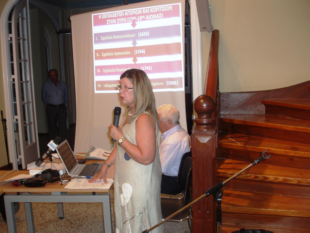 Το αξιόλογο βιβλίο της εκπαιδευτικού και συμβούλου προσχολικής αγωγής, Ελπίδας Πρίντεζη Καμπέλη, με τίτλο “Η ιστορία της εκπαίδευσης στη Σύρο τον 17ο – 19ο αιώνα”, παρουσιάστηκε την Κυριακή στο κτίριο της έπαυλης “Τσιροπινά” στην Ποσειδωνία, στην εκδήλωση που πραγματοποιήθηκε από τον σύνδεσμο Ελλήνων Καθολικών Σύρου παρουσία του προέδρου Ισίδωρου Σαλάχα και εκπροσώπου της Ιεράς Μητρόπολης Σύρου.