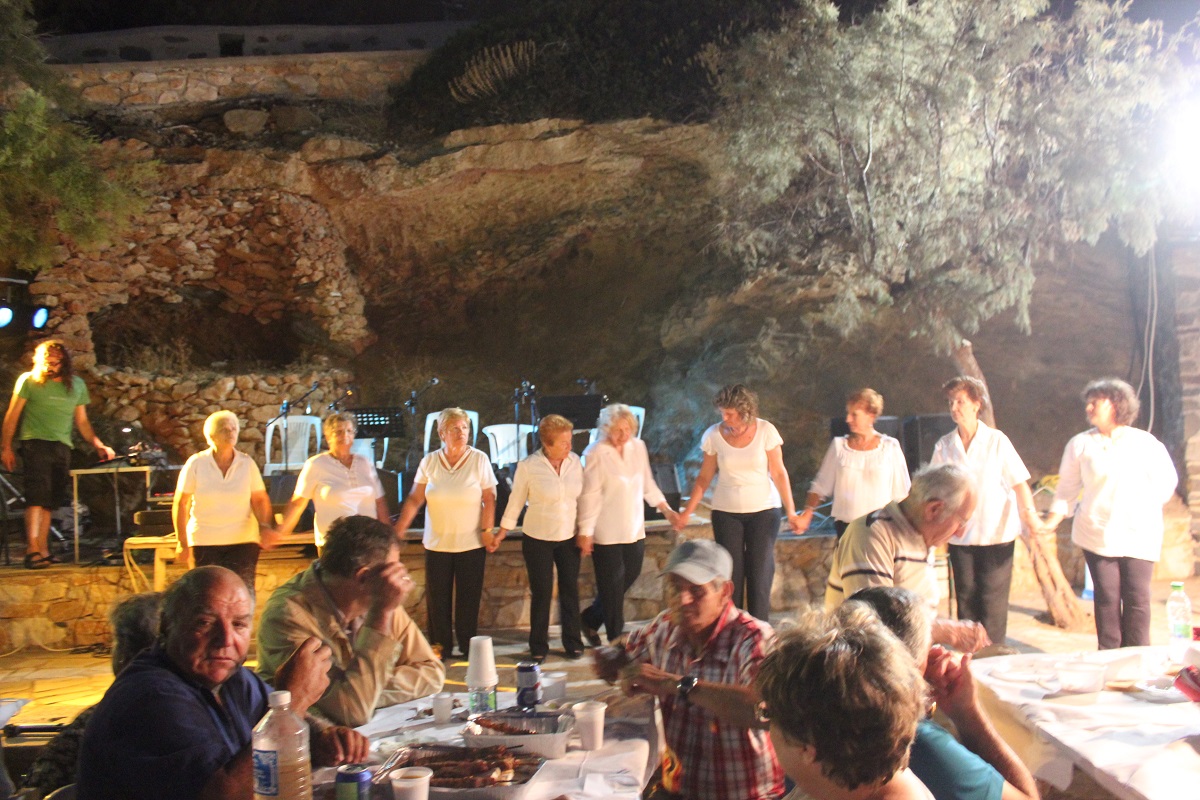 Στη συνέχεια, οι παρευρισκόμενοι είχαν την ευκαιρία να γευθούν μοναδικούς μεζέδες και κρασί και να διασκεδάσουν με ζωντανή νησιώτικη και ρεμπέτικη μουσική μέχρι τις πρώτες πρωινές ώρες. Την εκδήλωση διοργάνωσε ο Ναυτικός Οικολογικός Πολιτιστικός Όμιλος Κινίου, ενώ στο γλέντι συμμετείχε επίσης το χορευτικό τμήμα του ΚΑΠΗ της Ερμούπολης.