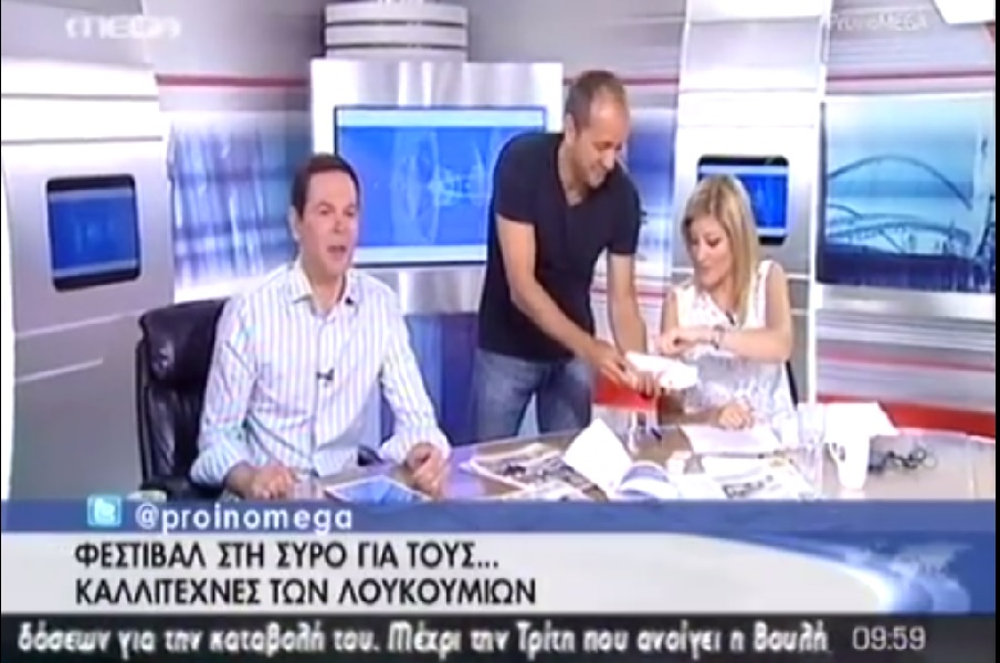 Στην πρωινή εκπομπή του MEGA CHANNEL με τον Δημήτρη Τάκη και την Ράνια Τζήμα ήταν καλεσμένοι την Παρασκευή 22-8-2014 ο Χάρης Βεκρής και ο Μιχάλης Αλτουβάς για να μιλήσουν για το LOUKOUMI FESTIVAL 2014 και για το συριανό Λουκουμάκι.
